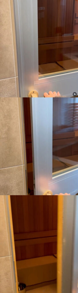 一般的なサウナ施設では、サウナ室のドアは内側からは押すだけで、ドアが開くタイプのものが多く用いられており、今回のようにレバー式のドアノブが使われることは比較的珍しいとされています。