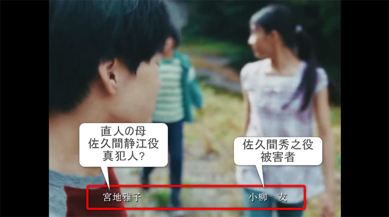 ドラマ「再会 Silent Truth」第1話で、佐久間直人の母親の静江は、ほんのちょっとだけ登場したにすぎません。にもかかわらず、静江を演じた宮地雅子さんは7番手の俳優としてクレジットされています。第1話で重要人物となっていた、佐久間秀之よりも上位のクレジットというのは非常に不自然さを感じます。登場している俳優のバランスを考えると明らかに上位すぎるクレジットと言えます。