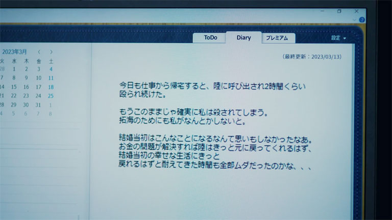 早瀬陸(演 松山ケンイチ)が妻・夏海(演 山口紗弥加)の命を奪うはずがないことは、ドラマを観ている視聴者ならだれもが理解しています。しかし、劇中では、夏海の日記がパソコンから発見され、陸が夏海にDVをしていた証拠が出てきます。これは明らかに、警察が捏造した証拠です。