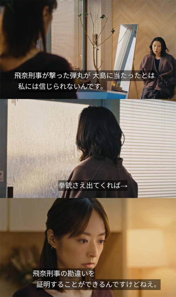 このシーンを観た視聴者は、「え~!! 淳一、強盗犯を撃ってない説があるわけ?」と衝撃を受けたはずです。しかし、本記事では、飛奈淳一が強盗犯・大島を「射さつ」したのは事実であり、南良刑事のこの言葉は、岩本万季子が拳銃を持っていると考えた上で、それを提出させるために、揺さぶりをかけてついた嘘だと推測します。